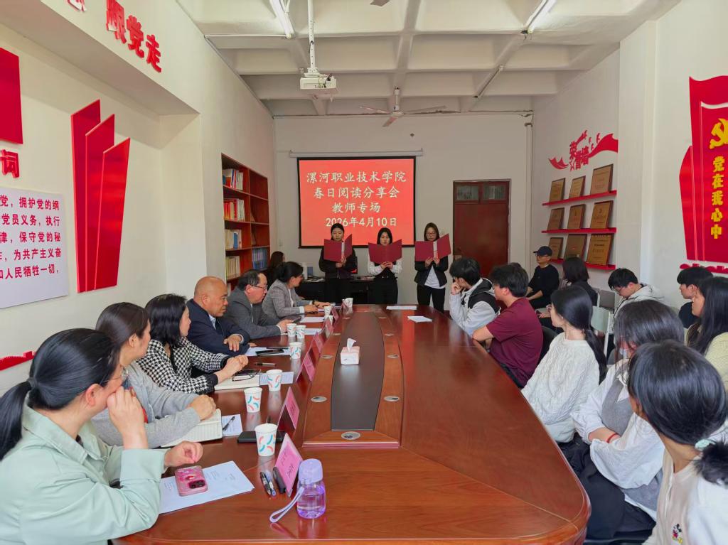 在第31个“世界读书日”到来之际,为推进书香校园建设,营造共读共学的良好氛围,4月10日下午,漯河职院“书香致远,阅读同行”教师专场读书分享会在图书馆顺利举办。校党委委员、副校长王群星,相关部门院系负责人、教师及读书协会成员参加活动。
